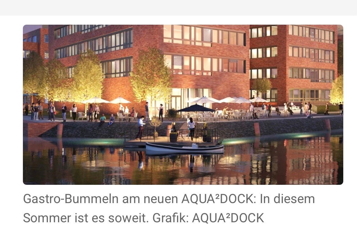 „Seit voriger Woche ziehen erste Mieter ins Hauptgebäude AQUA2DOCK ein und die Außenanlagen werden im Frühjahr der maritimen Lage angepasst und mit historischem Kopfsteinpflaster belegt“, sagt Bauherr Ingo Mönke gegenüber harburg-aktuell.