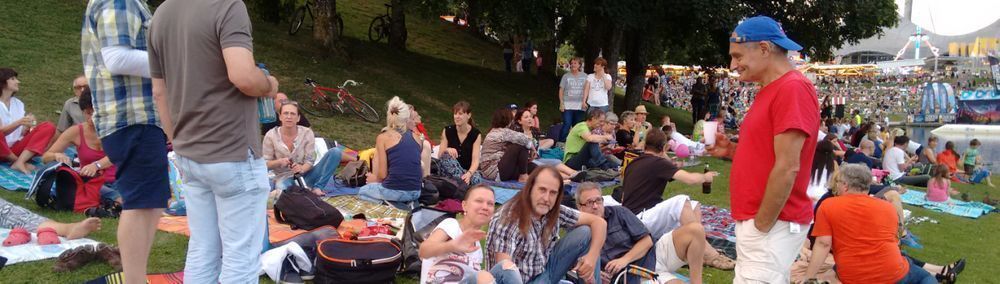 wir sitzen gemütlich zusammen auf Decken - trinken Wein, Sekt - etc. knabbern - Speisen mitgebrachte Salate - und dann gibts gegen 22:00 Uhr ein Riesenfeuerwerk :-))